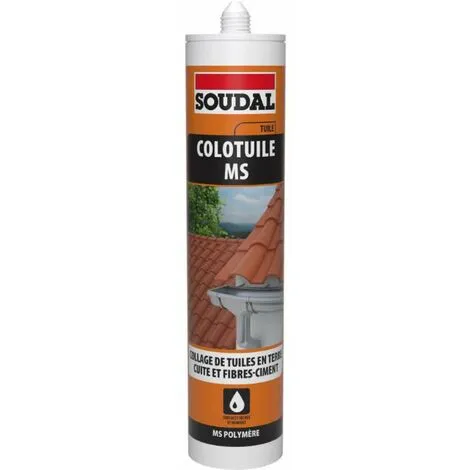 Description détaillée du produit: Produit: Cartouche mastic colle pour tuiles Application facile Caractéristiques: Excellent adhérence sur brique, fibres-ciment, béton Coloris: noir Contenance: Cartouche 290 ml Coloris: tuile terre cuite Durée de stockage: 9 mois dans son emballage fermé en un endroit sec et frais, à des températures de +5°C à +25°C Marque: Soudal
